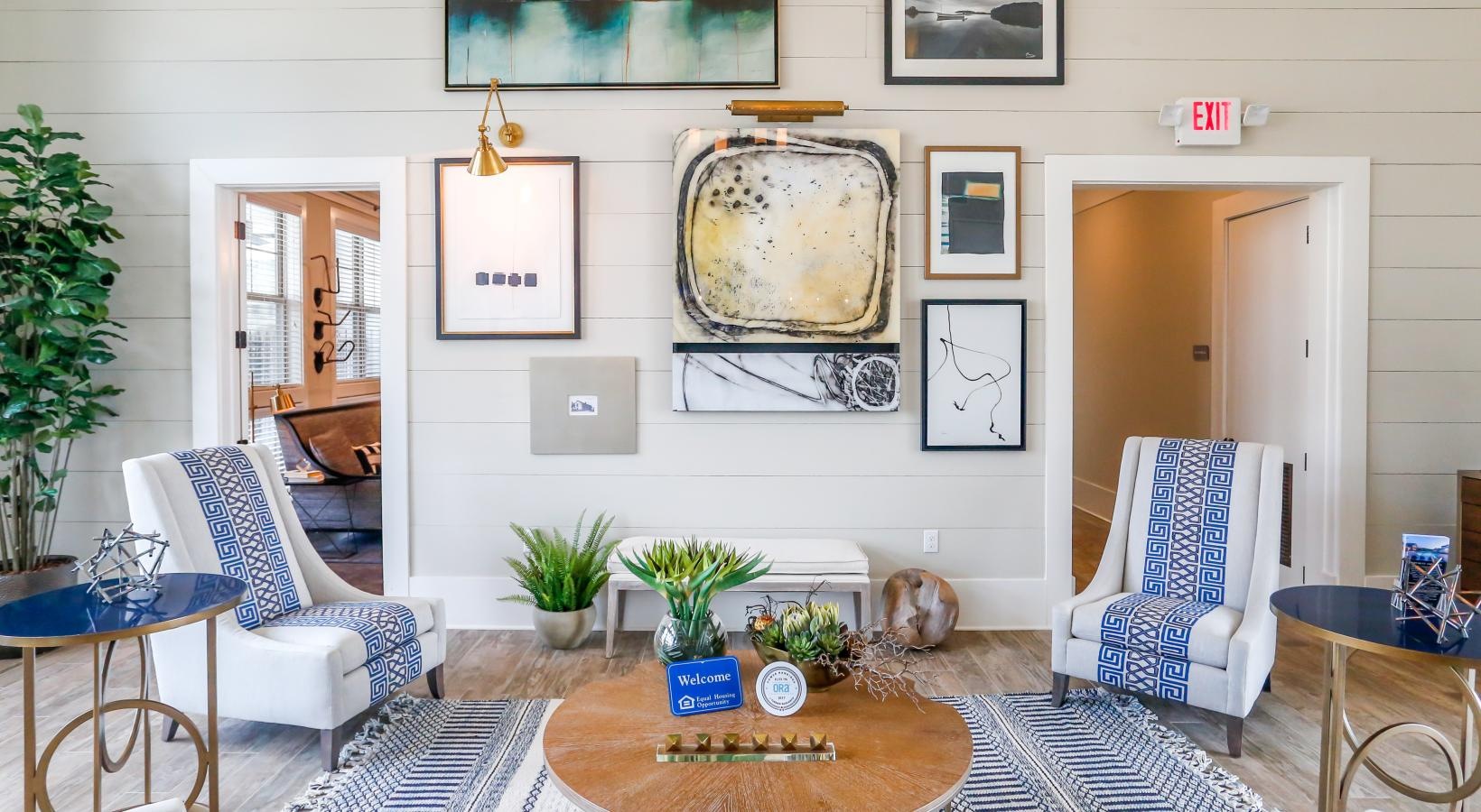 • a lounge with a rug and chairs