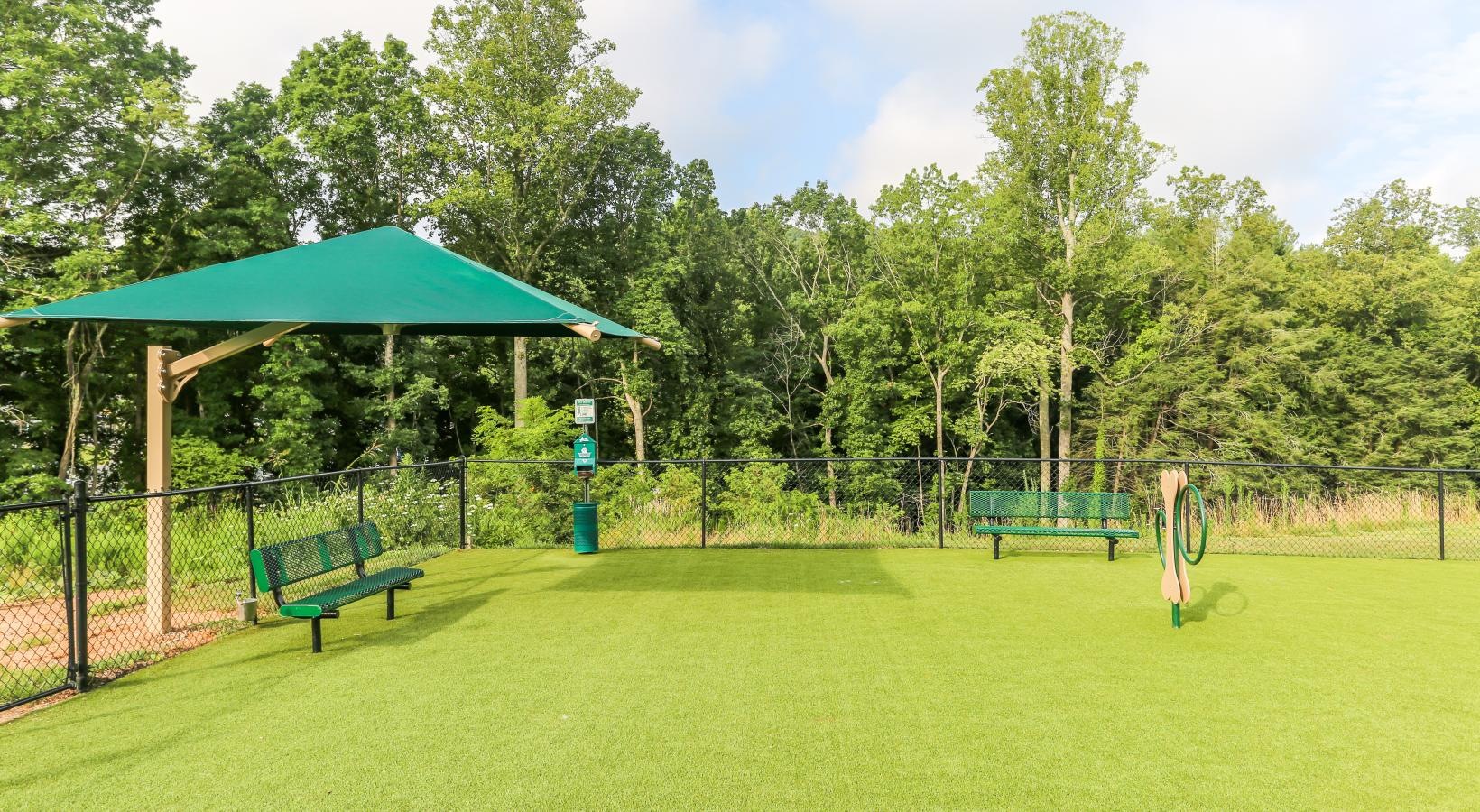 • a green park with benches