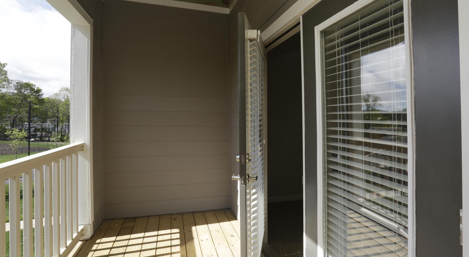 • a balcony with a door open